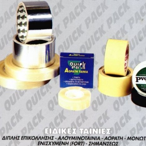 Κατασκευαστής και προμηθευτής κολλητικών ταινιών σε όλη την Ελλάδα. Τα προϊόντα μας περιλαμβάνουν ταινίες συσκευασίας, ρολά, ταινίες χαρτικά, ταινίες σφράγισης, τυπωμένες ταινίες συσκευασίας, κολλητικές ταινίες, ταινίες αφρού, ταινίες διπλής όψεως, ταινίες προστασίας, PVC ταινίες και ταινίες διαγράμμισης.